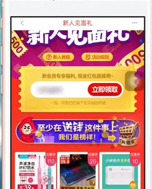 2、点击【立即领取】即可,新人礼包仅限手机淘宝新用户领取哦。
