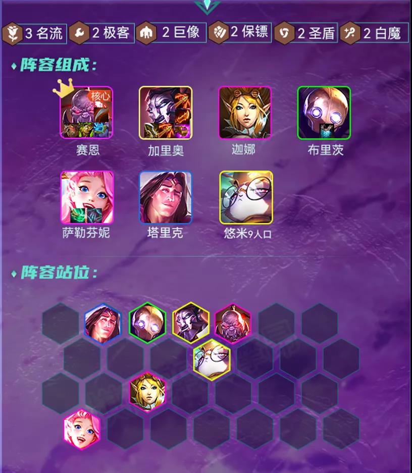 名流巨像在这次更新加里奥攻击力被大砍30,输出能力上与上版本相对弱势了一些,但经过测试阵容强度依然爆炸,加里奥1星就可吃分,2星就是吃鸡的1号种子选手。这版本阵容上无变化,阵容的难点依然是过渡,稳定过渡到8、9人口才是王道。
