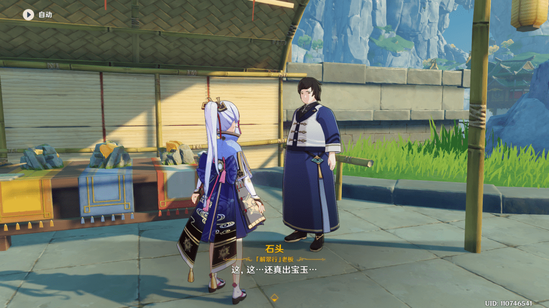 首先,我们需要刷新到每日任务点石成金,接着来到NPC石头的当铺,与石头对话,选择600摩拉的璞石,直到到如上图所示的对话,选择我仔细看看。