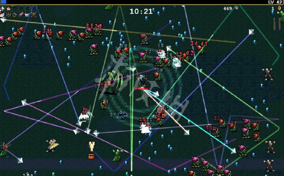 有了雷环 魔杖,后面补输出就完事了,补输出角度,药水YYDS的,吸引器还能增加拾取范围,然后剩下的格子,随便你带,我因为鸟 符文追踪 骨头,这三武器可以直接空出来三被动,菠菜,蜡烛,拳套,这三被动随便搭配,选加金币,经验的都可以。