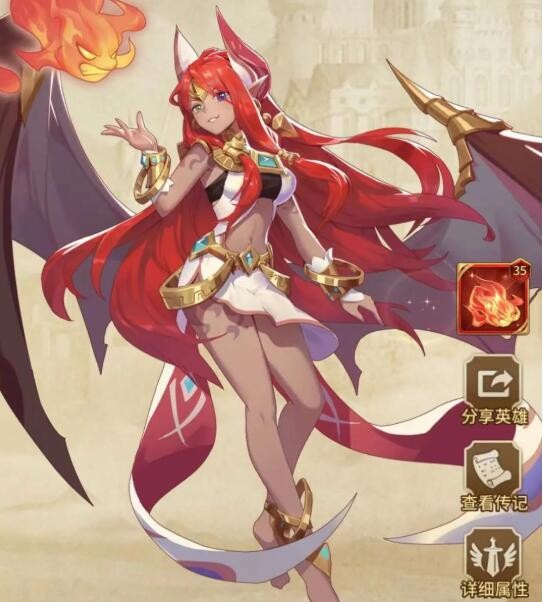 技能解析:一技能对生命最低的3个单位回血,并提升攻击力,火系英雄额外加暴击伤害,并对其中一个单位附加防御、抗爆提升效果;三技能概率附加【灼烧】和【伤害加深】效果。