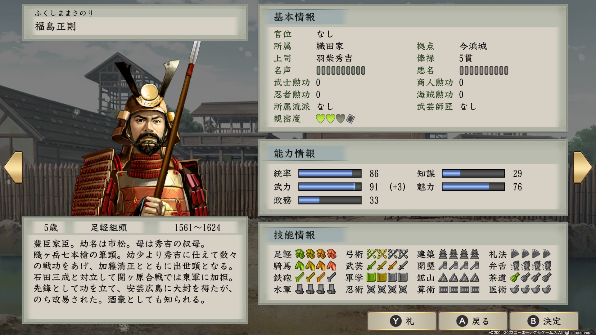 5、羽柴秀吉属于织田家,本据地在播磨城。
