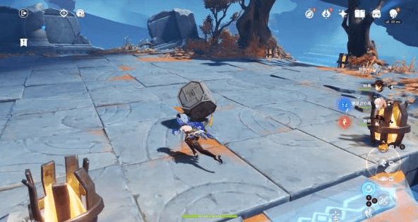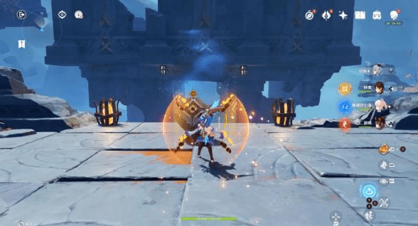 4、开完宝箱之后,去旋转三次机关,转到下方锁住的机关正对这个地方,如图。
