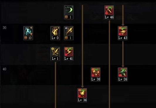 穿戴CP武器时,核心技能为剑刃风暴和死亡风暴,必满。注意,图示中的旋刃不是必满技能,根据个人喜好也可以选择点满螺旋穿刺(韩服也有不少点满了旋刃冲击,亦可尝试)。