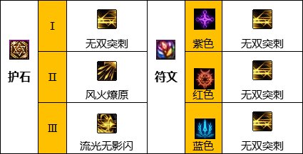 护石无双突刺、风火燎原、流光无影闪,符文九保无双突刺