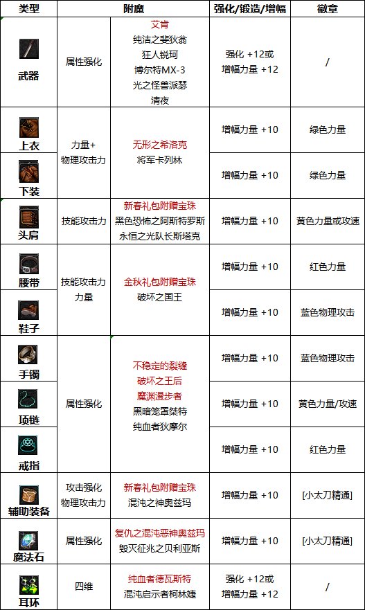 以上装备可在BUFF强化栏配置生效,角色的BUFF技能将会吃到BUFF强化栏的技能等级加成和数值强化