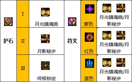 护石月光镇魂曲、月影秘步、毁灭狂欢/月相轮舞,符文九保月光镇魂曲/月影秘步