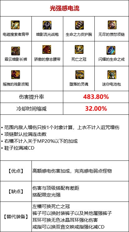 全面强化感电效果的自定义装备,主要是耳环和上衣带来了高额的提升