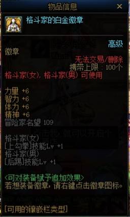 2.使用范围上,一种白金徽章仅限一种职业使用