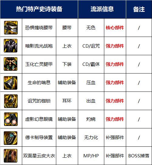 诸多流派如灼伤、压血、无色的重要搭配强散以及时装裤都在这个副本有产出,上衣部位在逆转结局过了使用期后,比较有价值的稻草人CD上衣也能在这里获得。BOSS的专属掉落装备中比较好用的为MP上衣。