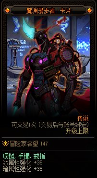 该副本BOSS魔渊漫步者会掉落卡片,属性为冰暗双属强35点,为版本毕业级别首饰附魔。不难预测刚开服时价格会非常高。