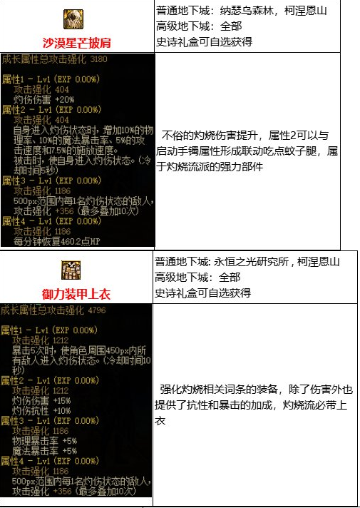 机械战神前左槽和上衣史诗普遍性能一般,所以灼烧左槽和上衣可以用很久