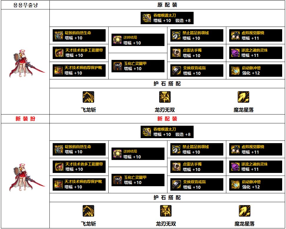 护石选择飞龙斩、龙刃无双、魔龙星落