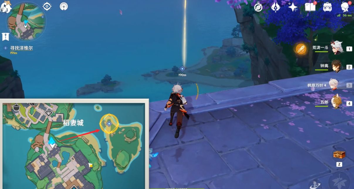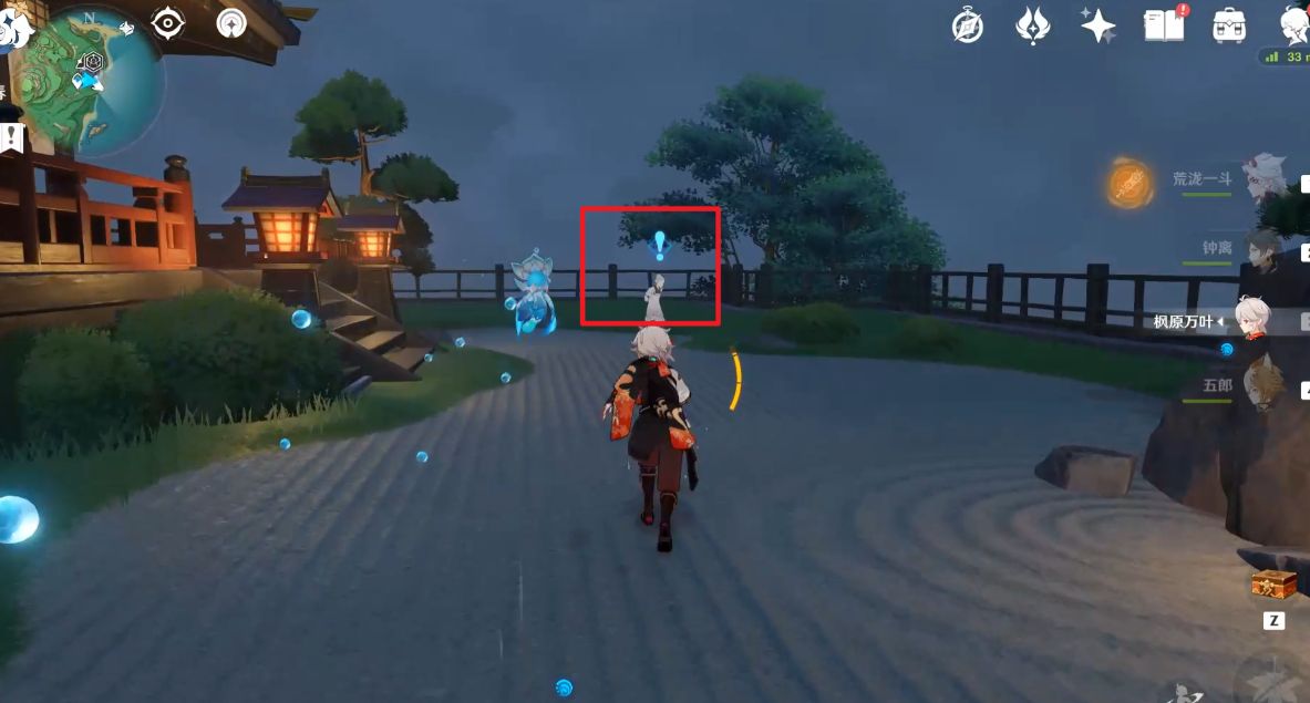 3、根据任务指引,来到稻妻城右边小岛的最上方找到泽维尔并触发对话。