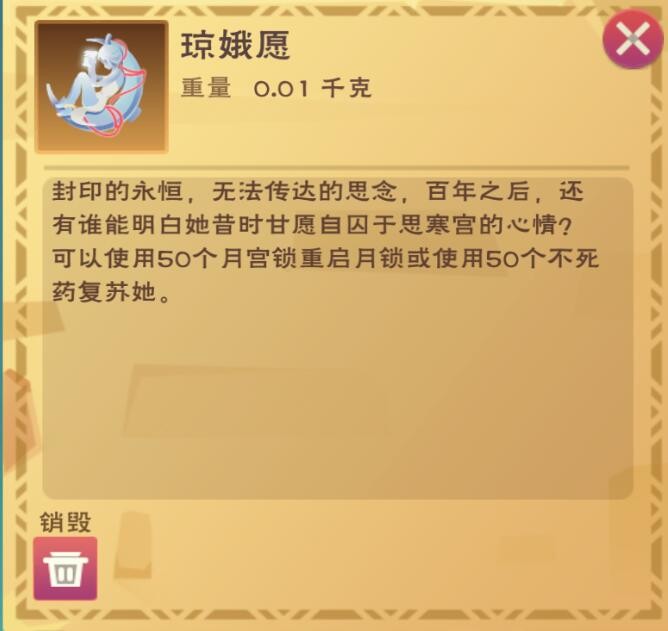 可以使用50个月宫锁重启月锁或使用50个不死药复苏她