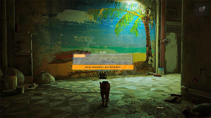 收藏品说明:无法跳过此收藏品。在第3中,您将到达猫坐在水桶中下层的地方。骑行结束后,您将看到一幅描绘热带岛屿海岸的壁画。B-12将自动评论这一发现。