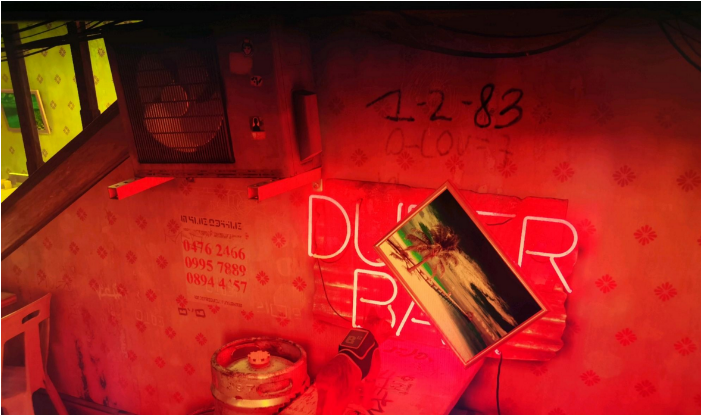 再去那个酒吧,吧台边上有一个灯牌,上面有一幅画,扒拉那个画就会露出密码。