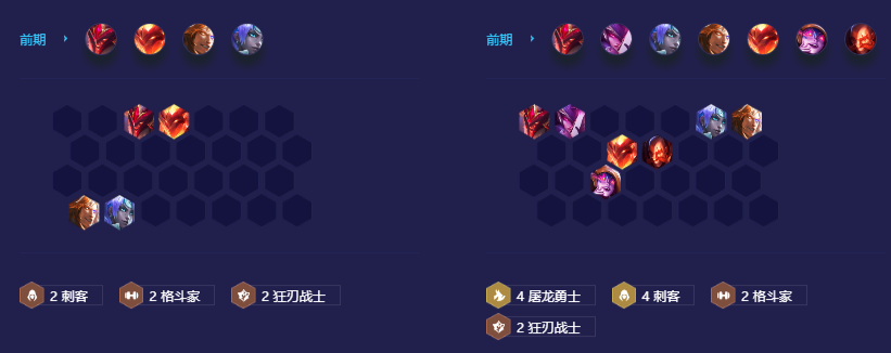 刺客可以站前排对位对手C位,其余站后排可以吸引敌方火力,起到拉扯阵型的作用。