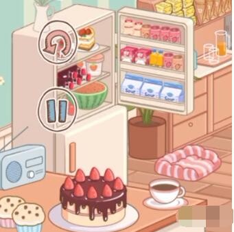 3、然后将食物都拿出来并进行分类,面包和果酱在靠近门的柜子上,冷饮和牛奶、水果、蛋糕在冰箱,冰箱可以打开