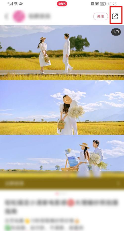 1、打开小红书,点击想保存照片右上角的共享按钮。