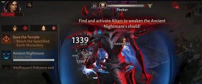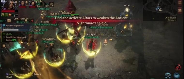 《暗黑破坏神不朽》远古噩梦打法介绍,远古噩梦有护盾保护,而且行走时会对周围玩家造成巨额伤害,所以首要目标就是破盾,然后再能进行输出。