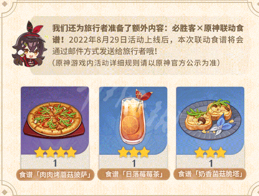 近期《原神》将开启与必胜客的联动活动,参与即可获得限时礼品。