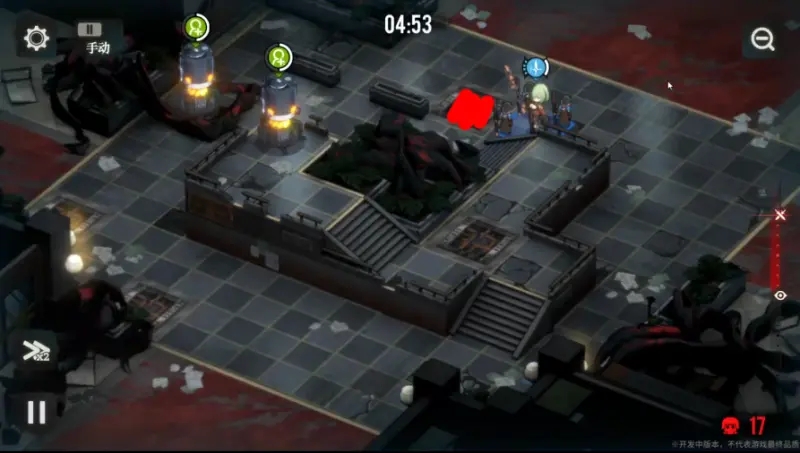 打的快的话清完右侧敌人时左侧的最后几只近战小兵刚好走到基地脸上,我们距离基地只有4格距离,马上回头清掉最后一波小怪就过关了。
