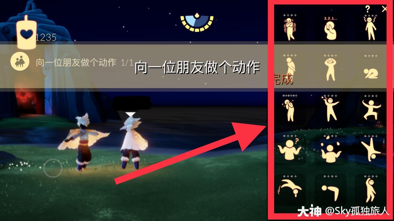 点击屏幕上方中间动作栏 面对好友 随机点击一个动作即可完成。