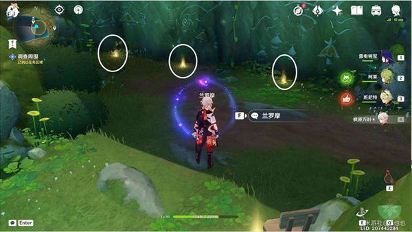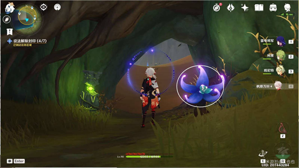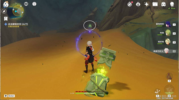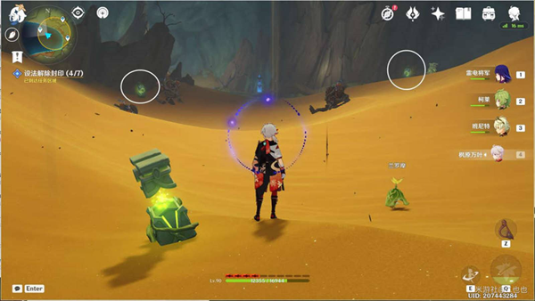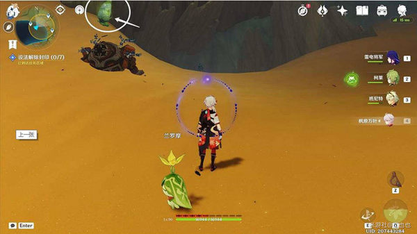 来到兰罗摩身边位置,往地图的东北方向走,解除图中左上角的第一处封印