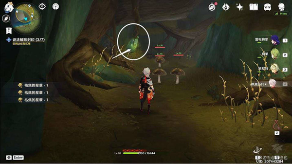 回到点燃的生之烛位置,往地图的东北方向走,解除图中指引的第七处封印