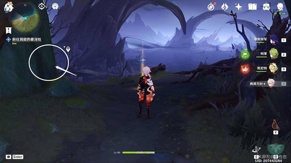 往地图的东北方向走,来到「幽闭花」位置,按指引弹奏乐曲,进入通道