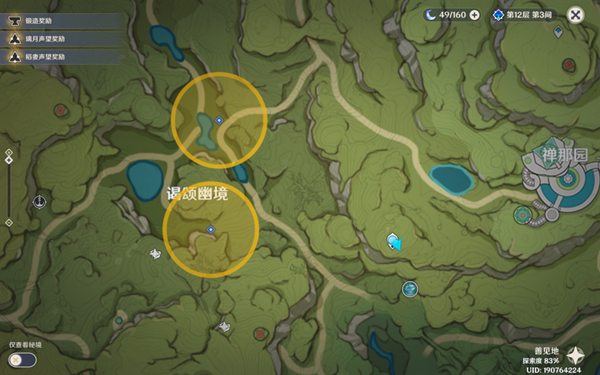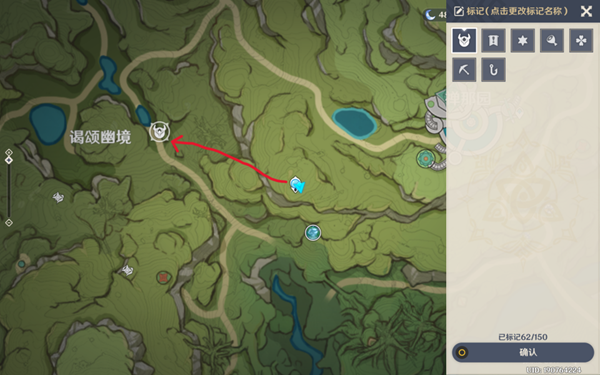 从七天神像往西走接取任务,由于我提前在不知情的情况下接取了,图中拿标点替代