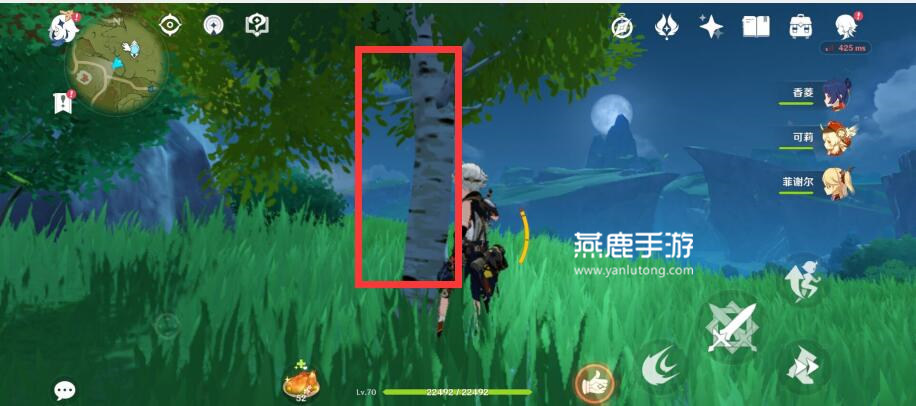 1、首先随便找到一颗树木,比如下图晨曦酒庄的七天神像旁边;