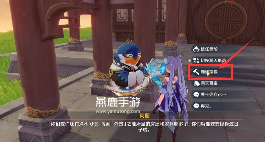 首先和家园里面的壶灵交流,点击制作摆设;