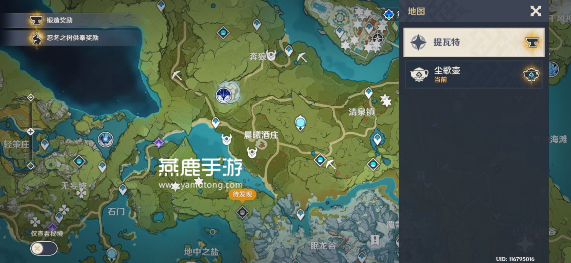 3、直接点击提瓦特;