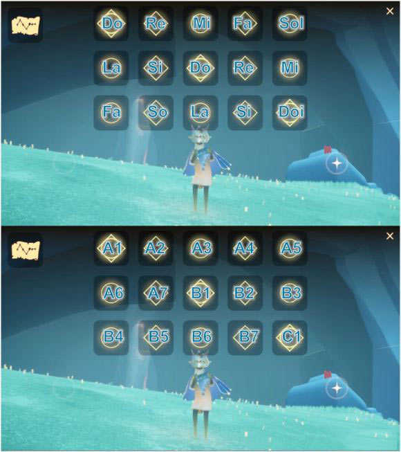 图上按键与游戏中的按键相对应,do、re、mi分别对应A1、A2、A3。