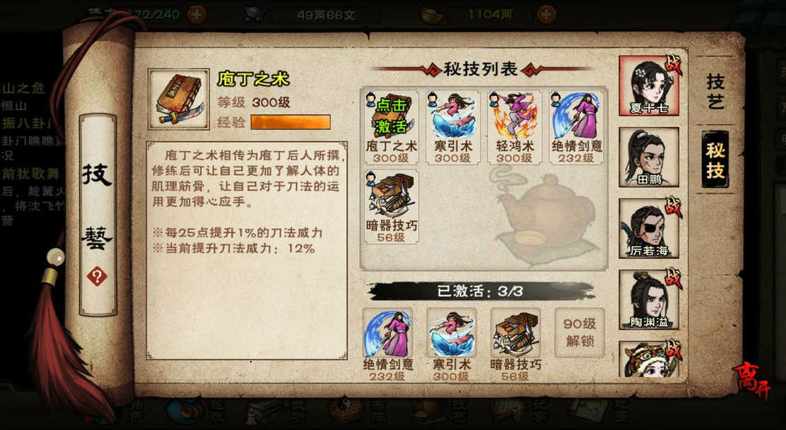7、打败周石天,掉落流云刀法,获得1庖丁解牛、200阅历和8声望