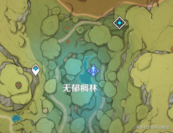 咱们先跟随任务指引来到无郁稠林中心。先传送到左边的传送点再往中间跑就好了。
