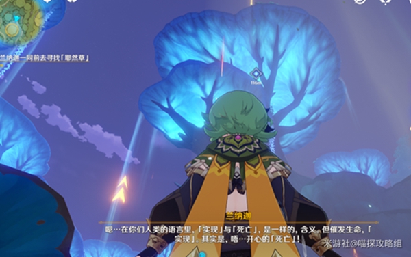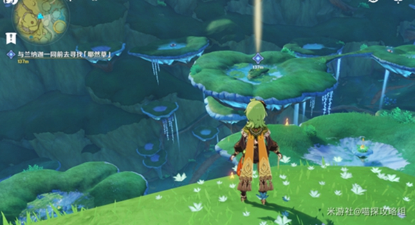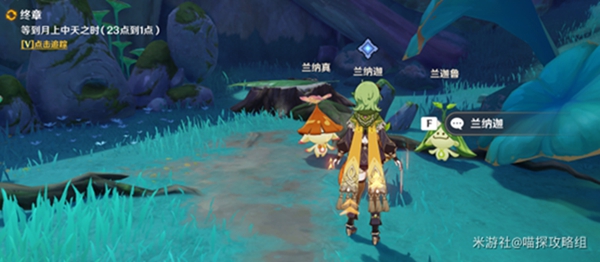 之后的任务指引是让咱们去跟兰那罗对话,咱们用四叶印拉上去就可以了。