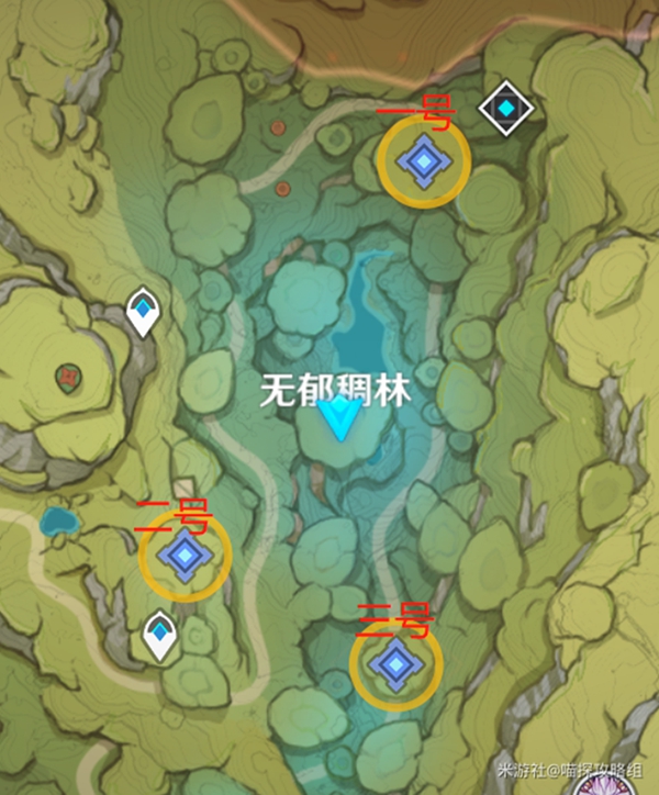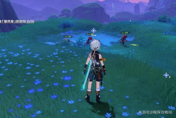 随后咱们直接传送到二号点位旁边锚点,随后直接跑过去就好了。会有三个丘丘人在跑步,咱们直接过去打掉。