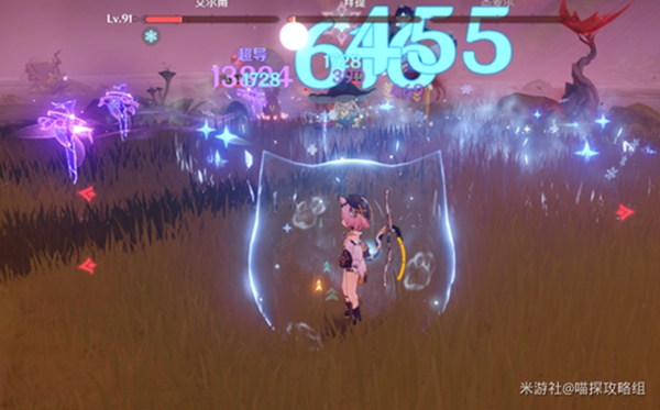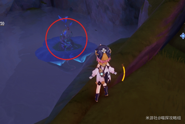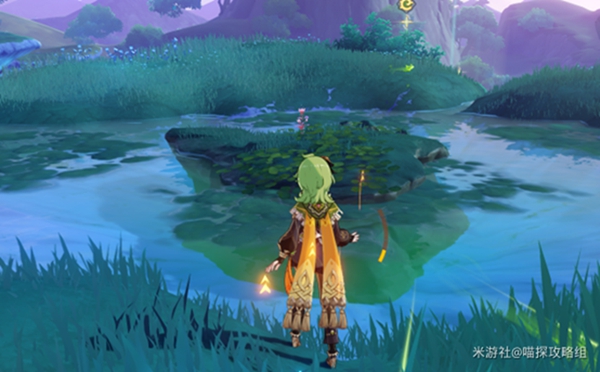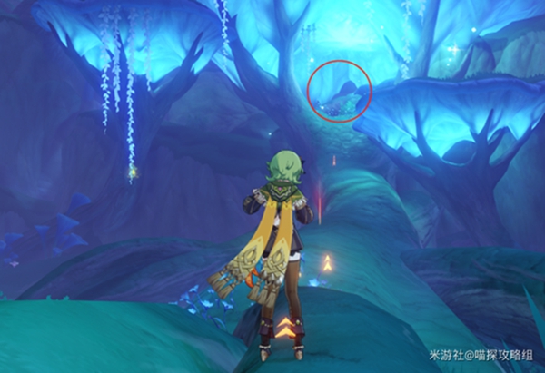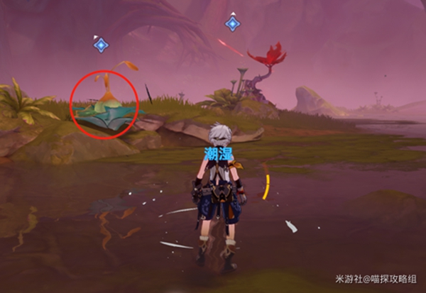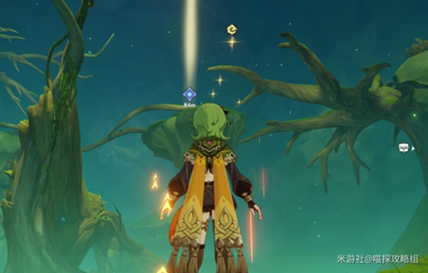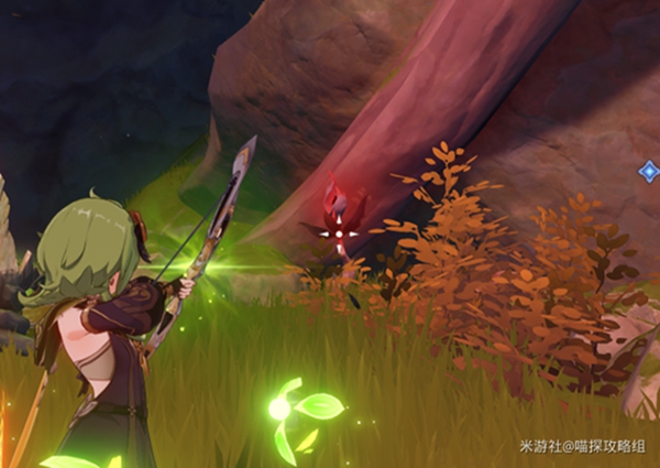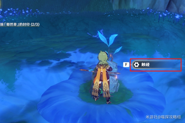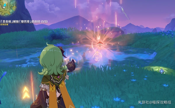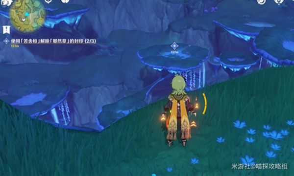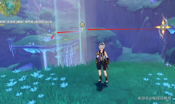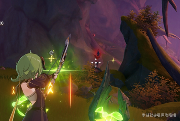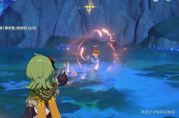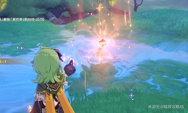 随后咱们来到中间的众叶觉蕊这里用草元素打掉它然后用四叶印把咱们拉到二号地区。