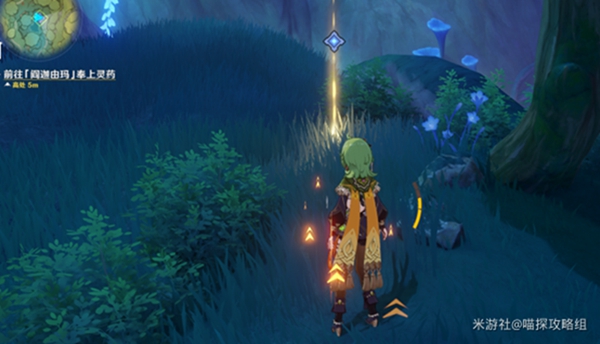 过去后会自动进入一段剧情,咱们需要到达无郁稠林中间的大蘑菇上取耶然草。