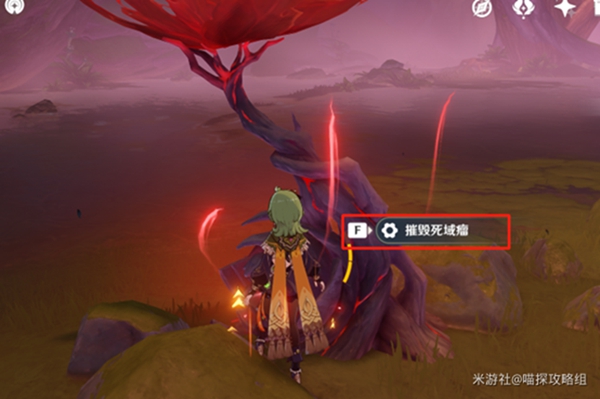 随后跟随任务指引来到最中间。清除一波蕈兽就可以去解除死域了。