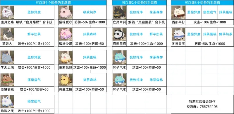 因为这六个蓝词条的概率获得提升,其他需要这六种蓝词条的其他主题猫变相也得到了提升。