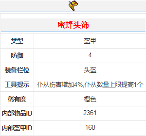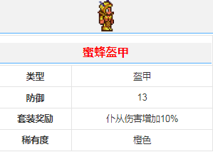 3、蜜蜂盔甲增加13点防御。