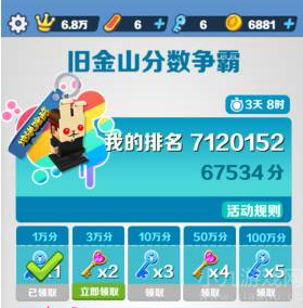 4、还可以参加争霸赛,达到要求的分数后可以获得钥匙奖励。