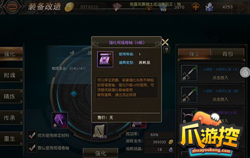 我们都知道装备的强化的时候是有成功率的,虽然前面几次失败了也不会掉强化等级,但是到了+6级的时候,强化一旦失败是有可能掉等级的。而这时候就是强化祝福卷轴出场的时候了,使用强化祝福卷轴可以保护强化的等级不降低。
