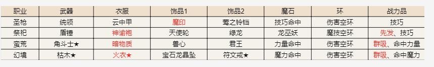 ● 阵容配置标红的不是红装,而是特别强调的免疫装备、战利品、注解、操作等