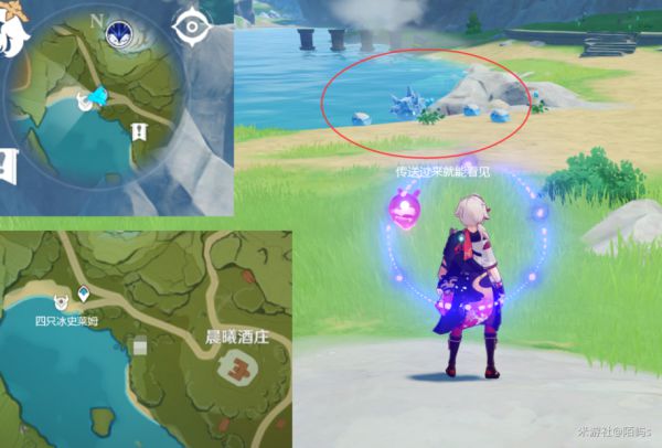我们来到晨曦酒庄左边的传送点,朝着地图西方向就能看见四只冰史莱姆了。