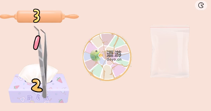 1、【粉墨登场】关卡需要修复粉饼,先打开盒子,将镜子、粉扑、粉饼都拿出来